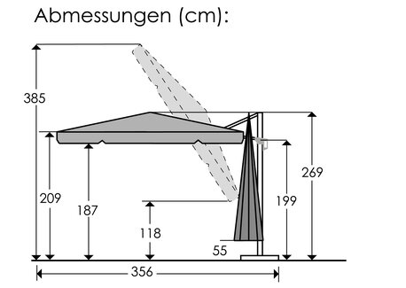Our parasols have not been tested in a wind tunnel. For this reason we cannot give you precise information about the maximum wind strength. In a wind tunnel, the parasol is exposed to homogeneous currents. The wind would therefore only hit the parasol from one side, whereas under real conditions winds affect the parasol from different directions and strengths.