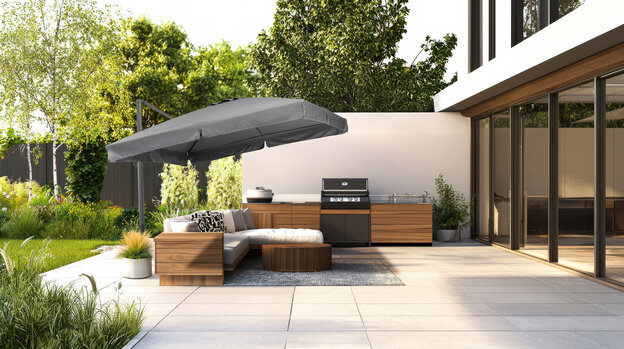 The best way to remove loose dirt or dust is to use a soft brush. In general, you can prevent major contamination by rinsing the cover regularly. However, if serious dirt does occur, the parasol can be cleaned with lukewarm water and mild soapy water. To do this, use a sponge or a soft brush. You should then allow the cover to dry completely on the stretched frame. Attention, the following types of cleaning are not suitable: Use of high-pressure cleaners Wash the cover in the washing machine Abrasive or harsh cleaning agents Clean with hot water (may cause fabric to shrink)