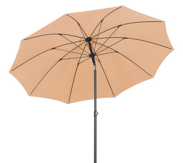 Our parasols have not been tested in a wind tunnel. For this reason we cannot give you precise information about the maximum wind strength. In a wind tunnel, the parasol is exposed to homogeneous currents. The wind would therefore only hit the parasol from one side, whereas under real conditions winds affect the parasol from different directions and strengths.