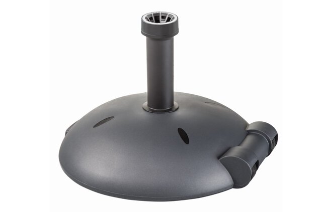 Balcony parasol stands are available in concrete, granite, and PE materials. Besides personal preference, the size of the parasol used also determines the choice of stand. For larger parasols, there are balcony plate stands. Those who prefer lighter options and have smaller parasols can opt for stands made of plastic, which can be filled with water or sand on-site.